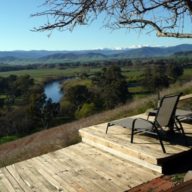 At 330m (1000 ft) elevation, the out look is over the Upper Murray River and onto lush river flats, undulating hills and in the distance,